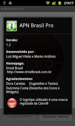 O APN Brasil Pro permite configurar de uma forma simples e intuitiva as APN's (Acess Point Names) de acesso à Internet e MMS para as operadoras brasileiras (Claro, Oi, TIM e VIVO).