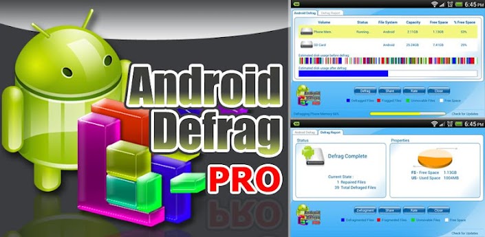 - Selecione Memória telefone ou Cartão SD de sua lista e clique em Defrag, e ele faz o trabalho automáticamente!